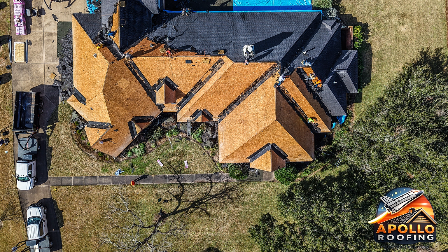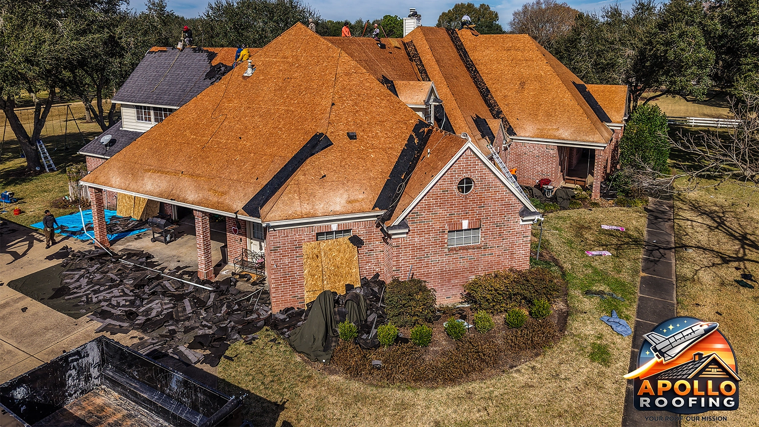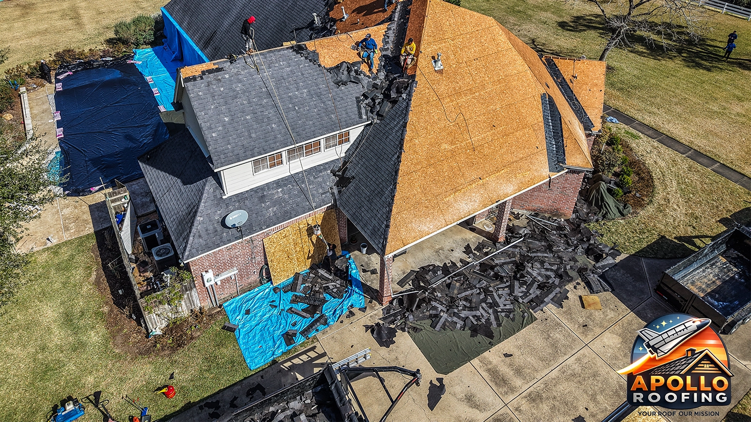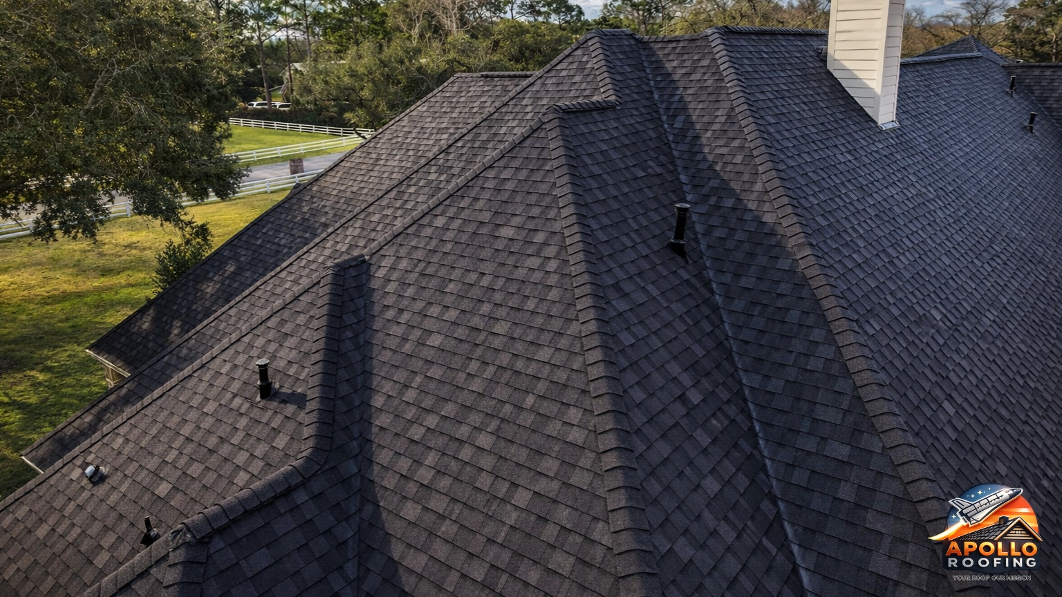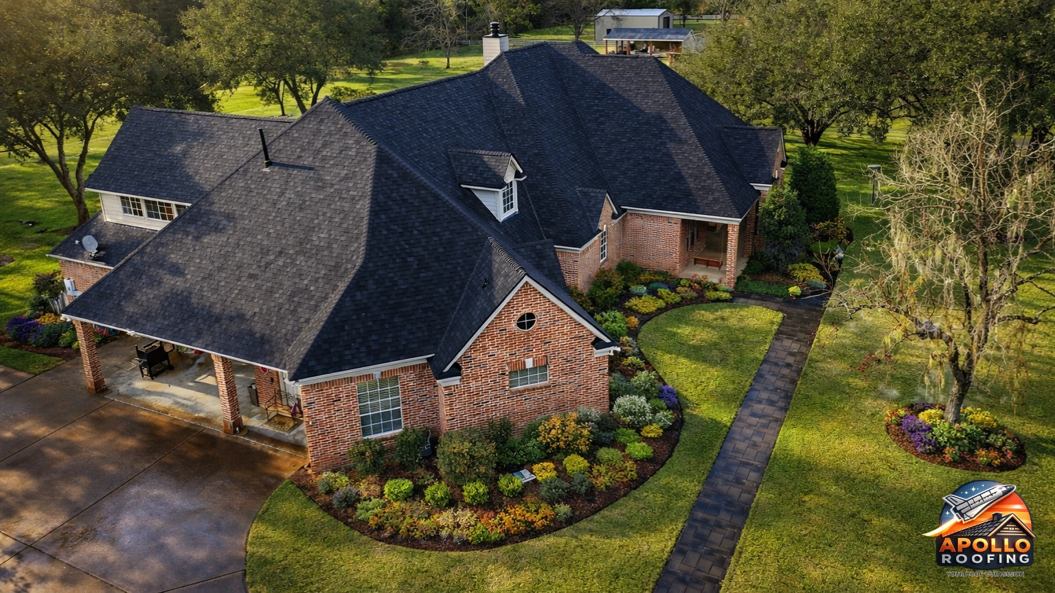 A full roof replacement completed in Richmond, TX, featuring new architectural asphalt shingles installed to provide durable protection, long-term performance, and a clean finish that complements the home’s countryside setting.